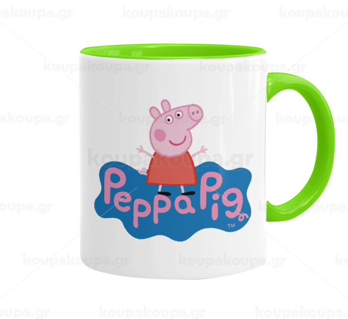 Πέππα το γουρουνάκι μπλε με όνομα, Κούπα χρωματιστή βεραμάν, κεραμική, 330ml