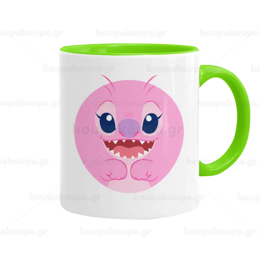 Lilo & Stitch Angel pink, Κούπα χρωματιστή βεραμάν, κεραμική, 330ml