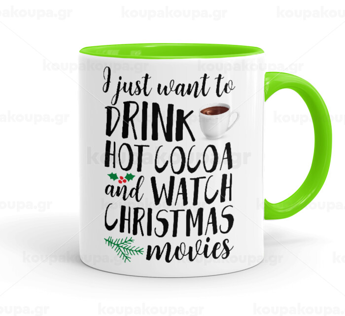 I just want to drink hot cocoa and watch christmas movies, Κούπα χρωματιστή βεραμάν, κεραμική, 330ml