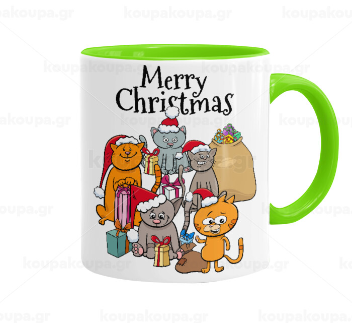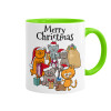 Merry Christmas Cats, Κούπα χρωματιστή βεραμάν, κεραμική, 330ml