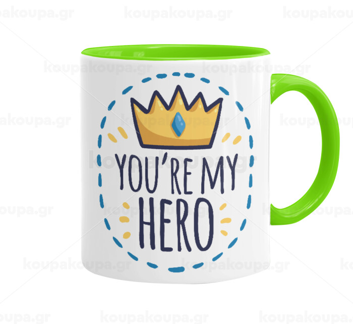 Dad, you are my hero!, Κούπα χρωματιστή βεραμάν, κεραμική, 330ml