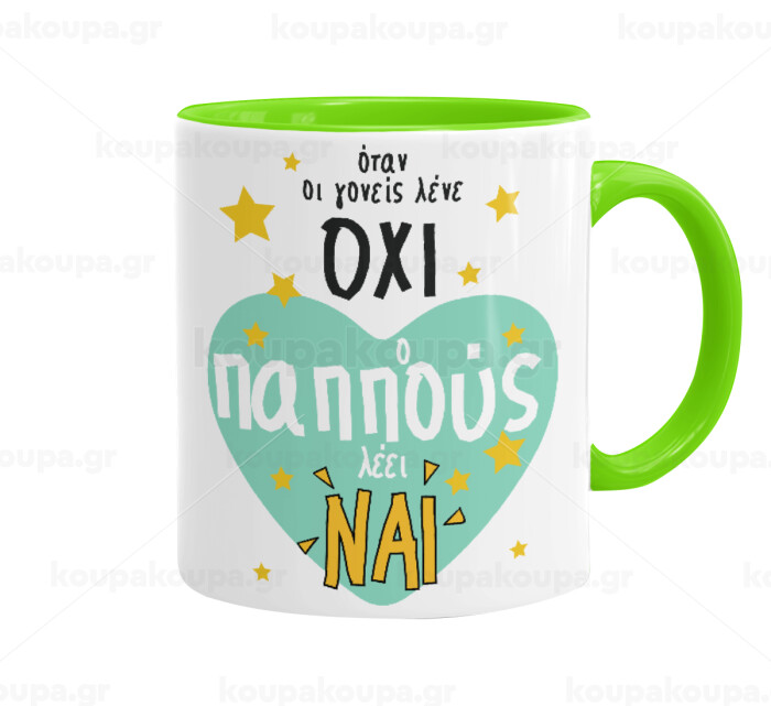 Όταν οι γονείς λένε ΟΧΙ, ο παππούς λέει ΝΑΙ, Κούπα χρωματιστή βεραμάν, κεραμική, 330ml