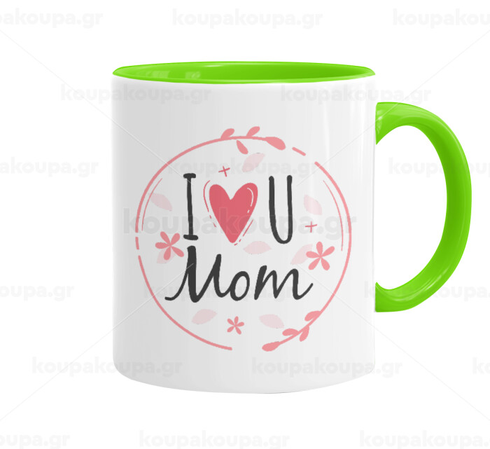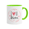 I Love you Mom pink, Κούπα χρωματιστή βεραμάν, κεραμική, 330ml