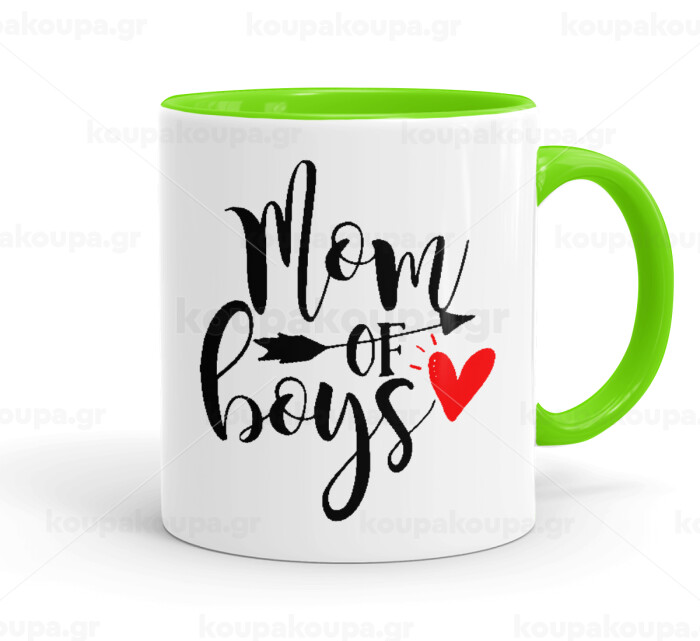 Mom of boys, Κούπα χρωματιστή βεραμάν, κεραμική, 330ml