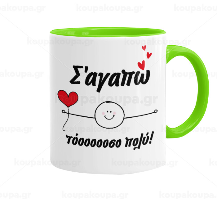 Σ΄αγαπώ τόοοοσο πολύ (Αγόρι)!!!, Κούπα χρωματιστή βεραμάν, κεραμική, 330ml