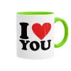 I LOVE YOU, Κούπα χρωματιστή βεραμάν, κεραμική, 330ml