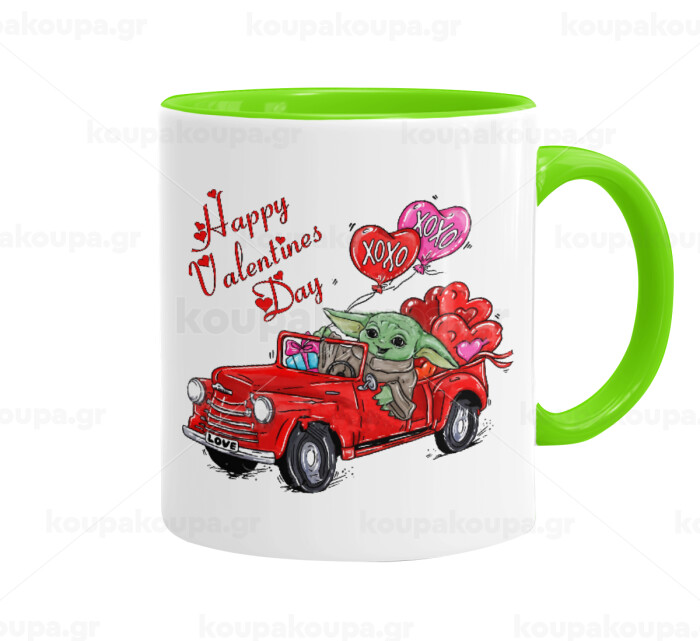 Yoda, happy valentines day (xoxo), Κούπα χρωματιστή βεραμάν, κεραμική, 330ml