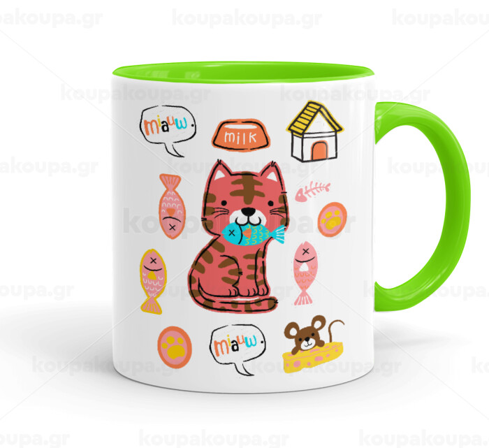 Cats and Fishes, Κούπα χρωματιστή βεραμάν, κεραμική, 330ml