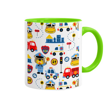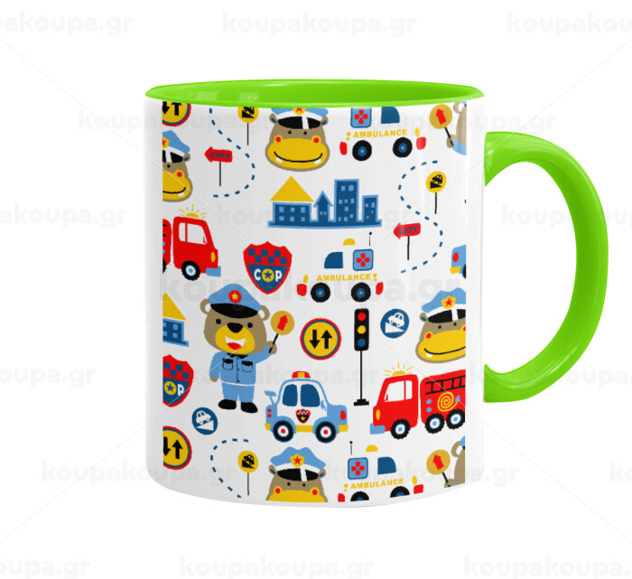 Rescue team cartoon, Κούπα χρωματιστή βεραμάν, κεραμική, 330ml