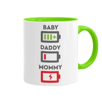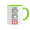 BABY, MOMMY, DADDY Low battery, Κούπα χρωματιστή βεραμάν, κεραμική, 330ml