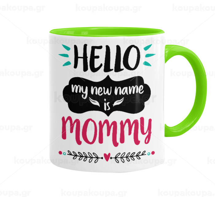 Hello, my new name is Mommy, Κούπα χρωματιστή βεραμάν, κεραμική, 330ml