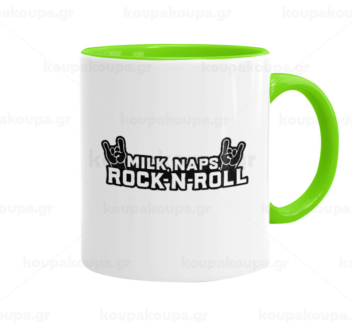 Milk, Naps, Rock N Roll, Κούπα χρωματιστή βεραμάν, κεραμική, 330ml