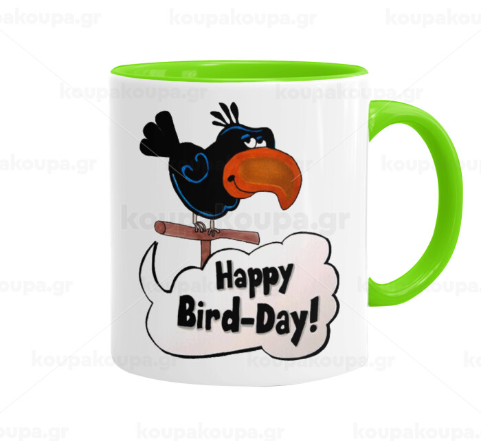 Happy Bird Day, Κούπα χρωματιστή βεραμάν, κεραμική, 330ml