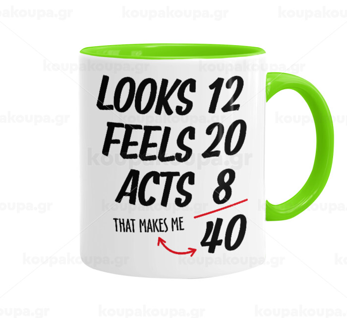 Looks, feels, acts LIKE your AGE, Κούπα χρωματιστή βεραμάν, κεραμική, 330ml