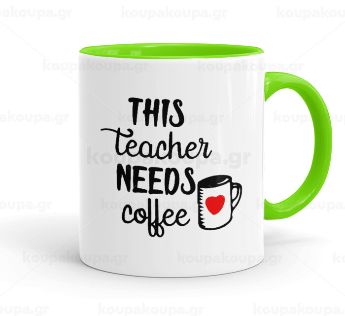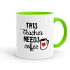 Τhis teacher needs coffee, Κούπα χρωματιστή βεραμάν, κεραμική, 330ml