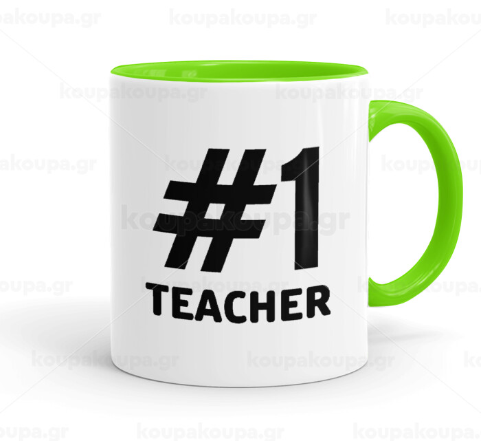 #1 teacher, Κούπα χρωματιστή βεραμάν, κεραμική, 330ml