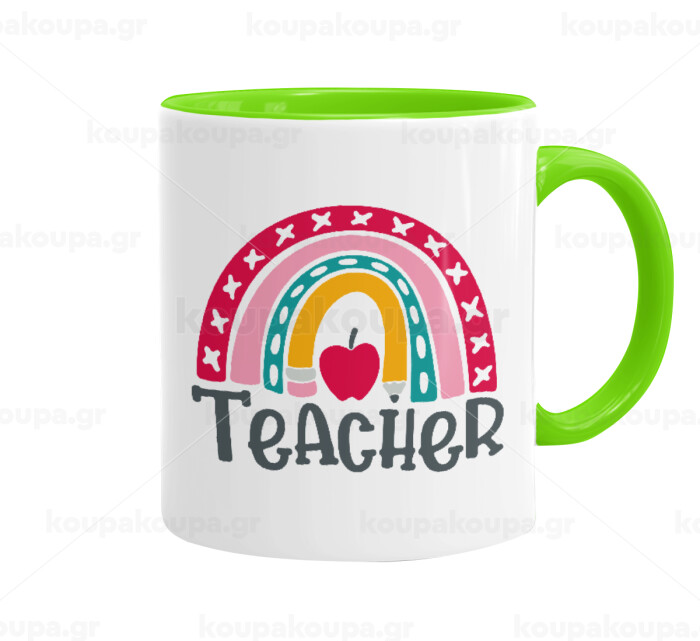 Rainbow teacher, Κούπα χρωματιστή βεραμάν, κεραμική, 330ml