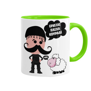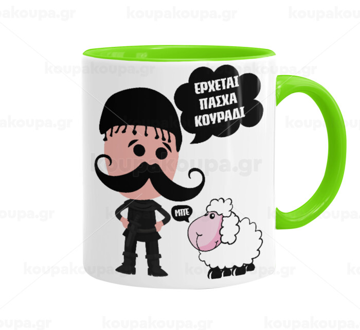 Κρητικός "Έρχεται Πάσχα κουράδι", Κούπα χρωματιστή βεραμάν, κεραμική, 330ml