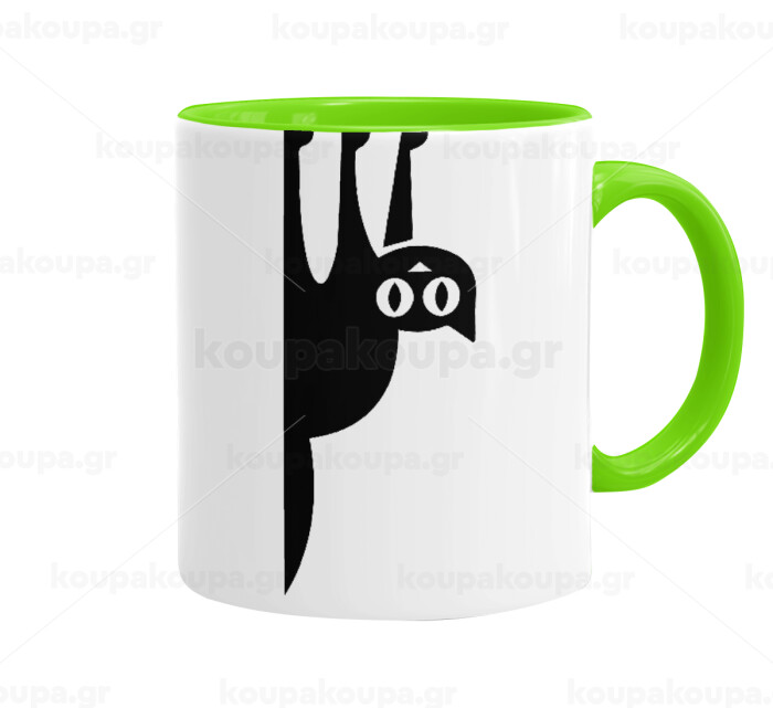 Cat upside down, Κούπα χρωματιστή βεραμάν, κεραμική, 330ml