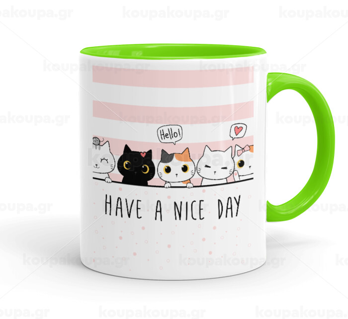 Have a nice day cats, Κούπα χρωματιστή βεραμάν, κεραμική, 330ml