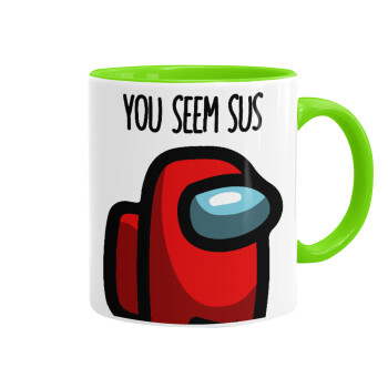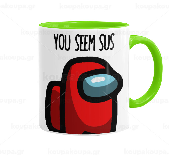Among US, you seem sus, Κούπα χρωματιστή βεραμάν, κεραμική, 330ml