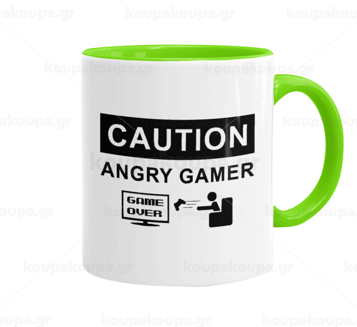Caution, angry gamer!, Κούπα χρωματιστή βεραμάν, κεραμική, 330ml