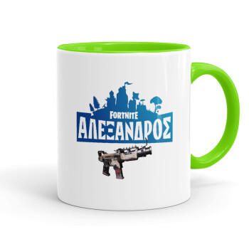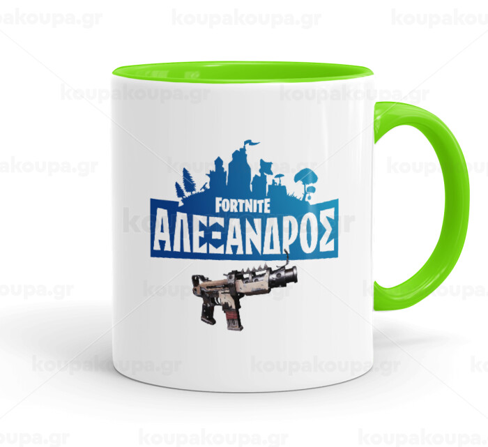 Fortnite with gun με το όνομα σου, Κούπα χρωματιστή βεραμάν, κεραμική, 330ml