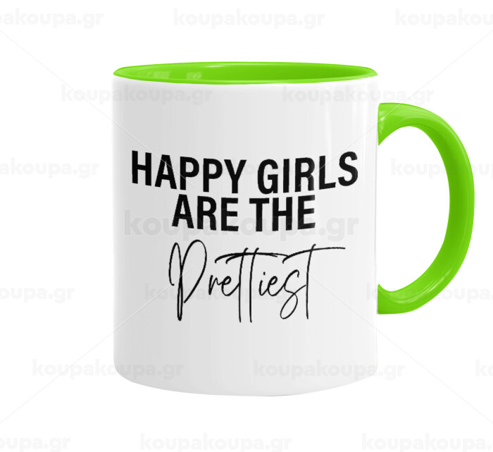 Happy girls are the prettiest, Κούπα χρωματιστή βεραμάν, κεραμική, 330ml