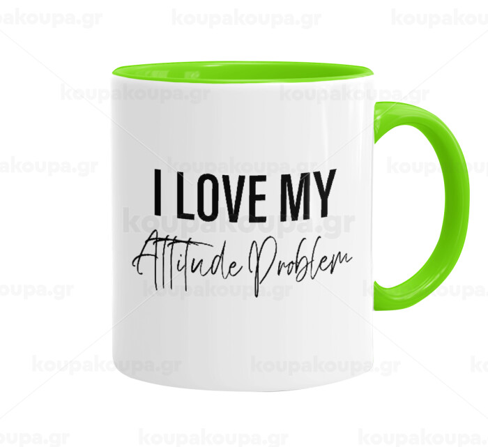 I love my attitude problem, Κούπα χρωματιστή βεραμάν, κεραμική, 330ml