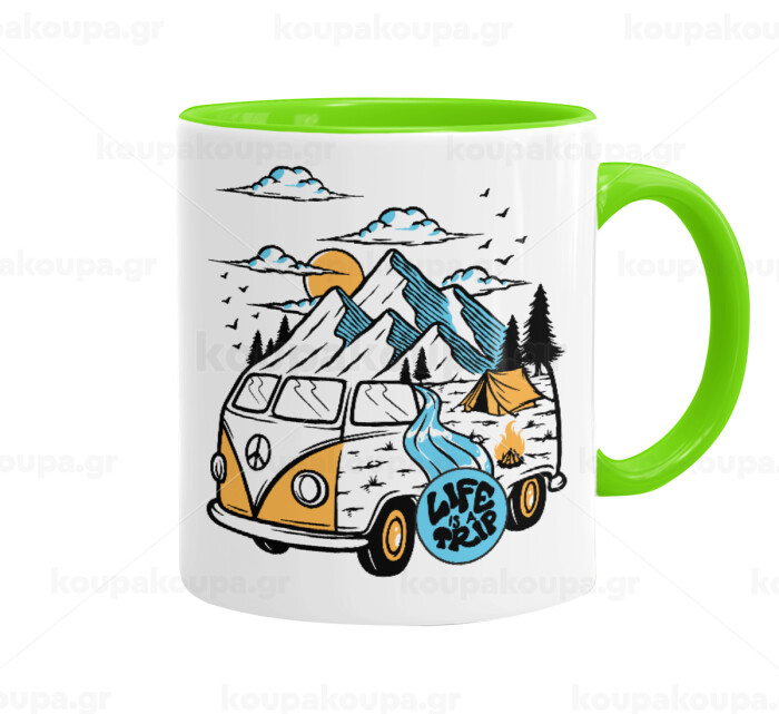 Life is a trip, Κούπα χρωματιστή βεραμάν, κεραμική, 330ml
