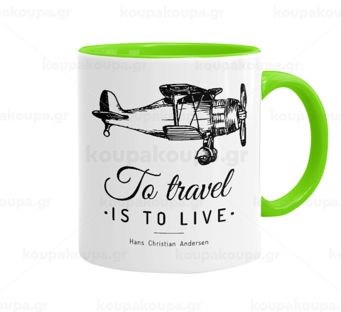 To travel is to live, Κούπα χρωματιστή βεραμάν, κεραμική, 330ml