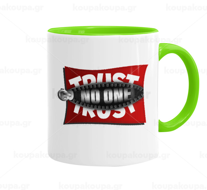 Trust no one... (zipper), Κούπα χρωματιστή βεραμάν, κεραμική, 330ml