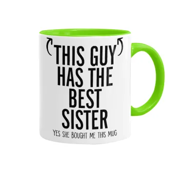 This guy has the best Sister, Κούπα χρωματιστή βεραμάν, κεραμική, 330ml
