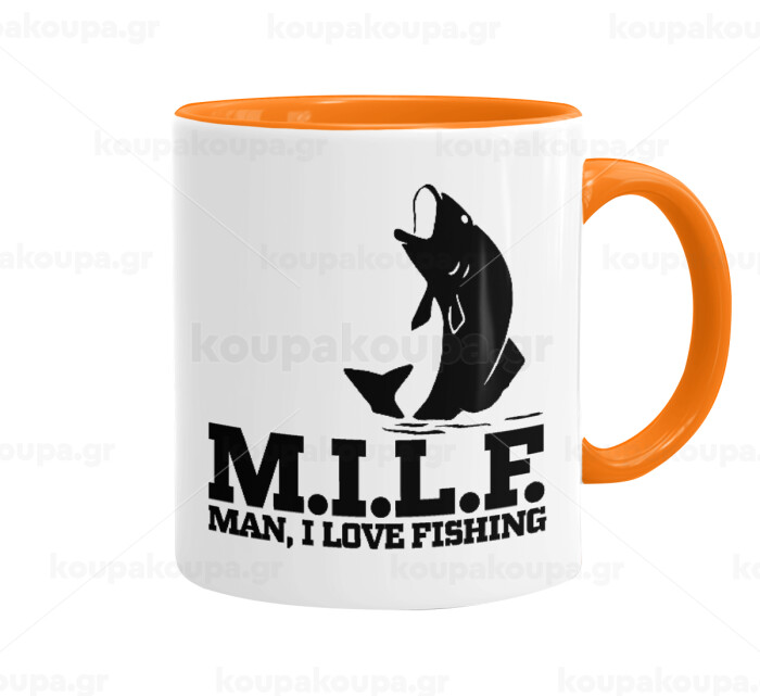 M.I.L.F. Mam i love fishing, Κούπα χρωματιστή πορτοκαλί, κεραμική, 330ml