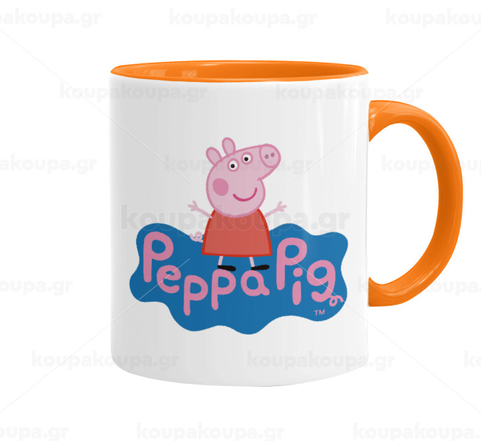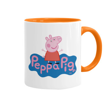 Πέππα το γουρουνάκι μπλε με όνομα, Κούπα χρωματιστή πορτοκαλί, κεραμική, 330ml