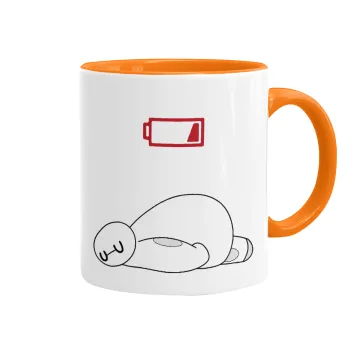 Baymax battery low, Κούπα χρωματιστή πορτοκαλί, κεραμική, 330ml