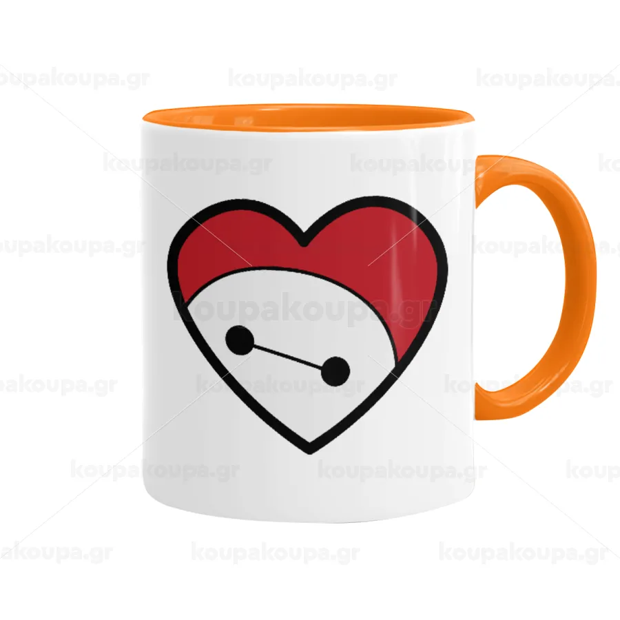 Baymax heart, Κούπα χρωματιστή πορτοκαλί, κεραμική, 330ml