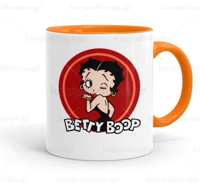Betty Boop kiss, Κούπα χρωματιστή πορτοκαλί, κεραμική, 330ml
