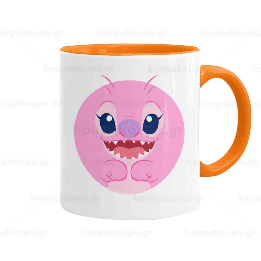 Lilo & Stitch Angel pink, Κούπα χρωματιστή πορτοκαλί, κεραμική, 330ml