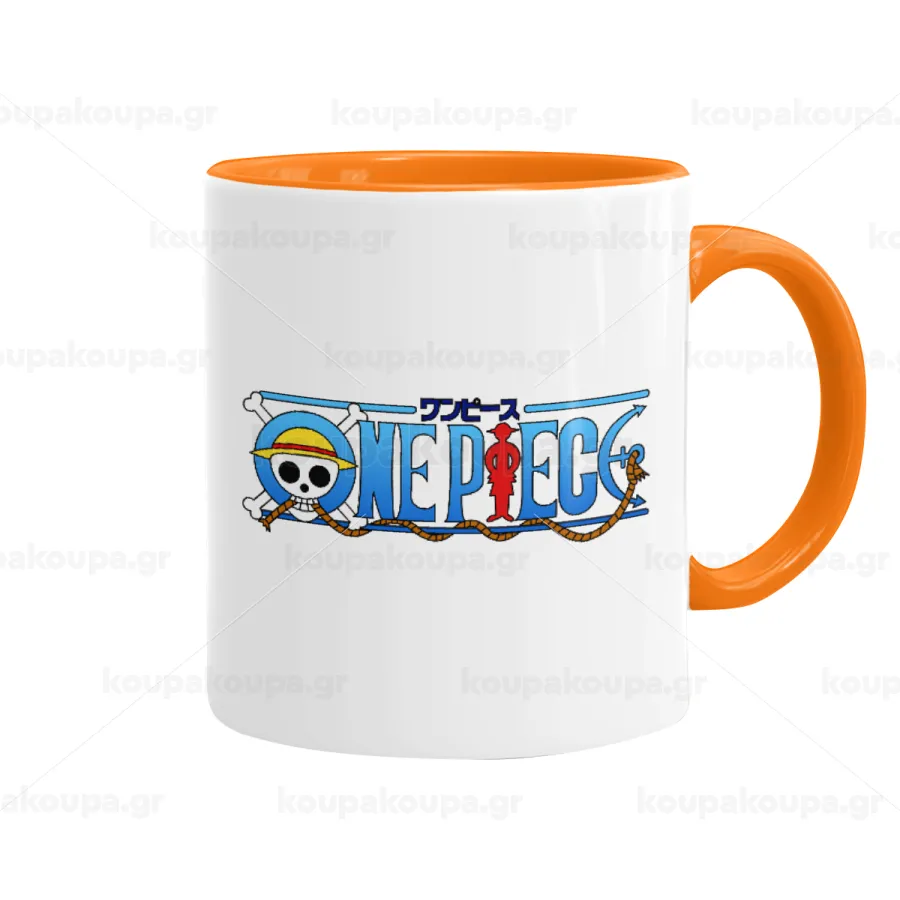 Onepiece logo, Κούπα χρωματιστή πορτοκαλί, κεραμική, 330ml