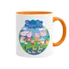 Peppa pig Family, Κούπα χρωματιστή πορτοκαλί, κεραμική, 330ml