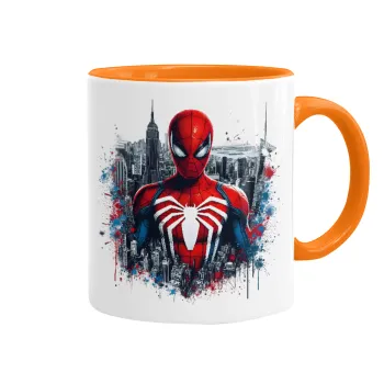Spiderman City, Κούπα χρωματιστή πορτοκαλί, κεραμική, 330ml