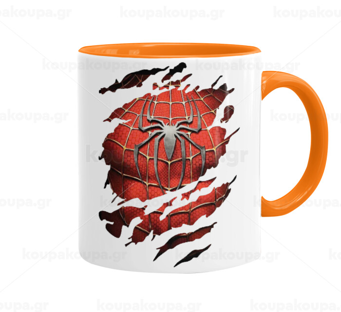 Spiderman cracked, Κούπα χρωματιστή πορτοκαλί, κεραμική, 330ml