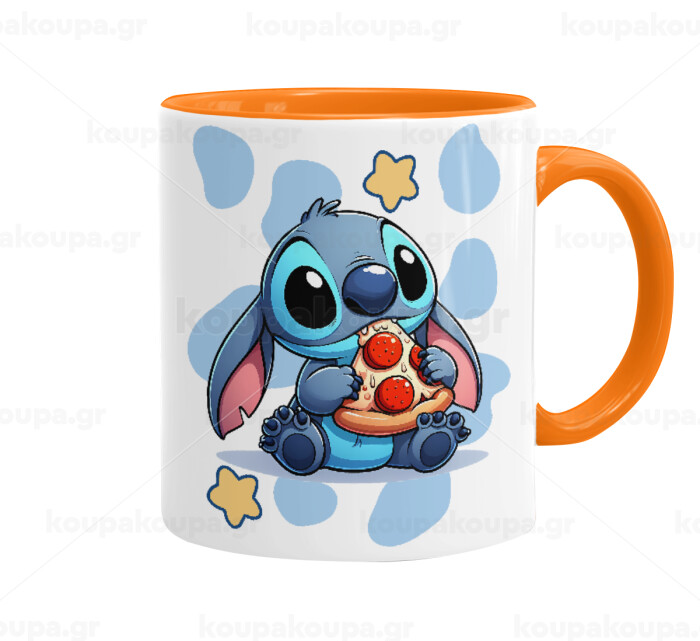 Stitch Pizza, Κούπα χρωματιστή πορτοκαλί, κεραμική, 330ml