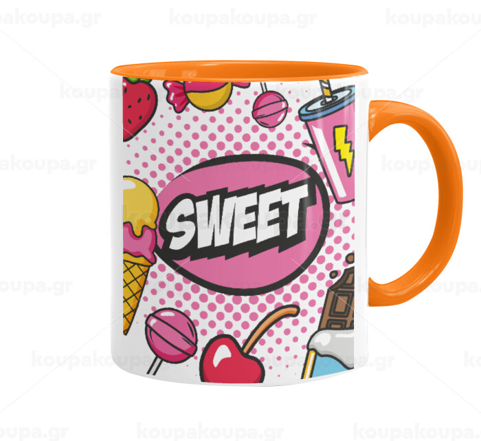 SWEET, Κούπα χρωματιστή πορτοκαλί, κεραμική, 330ml