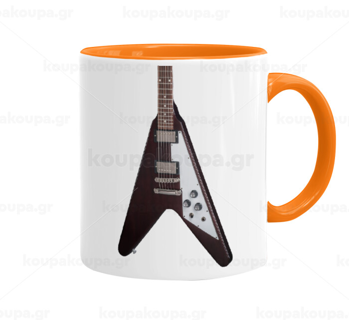 Guitar flying V, Κούπα χρωματιστή πορτοκαλί, κεραμική, 330ml