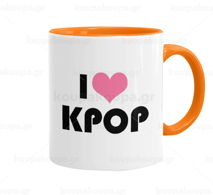 I Love KPOP, Κούπα χρωματιστή πορτοκαλί, κεραμική, 330ml