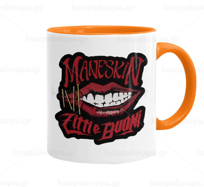 Maneskin lips, Κούπα χρωματιστή πορτοκαλί, κεραμική, 330ml