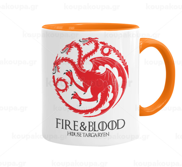 GOT House Targaryen, Fire Blood, Κούπα χρωματιστή πορτοκαλί, κεραμική, 330ml