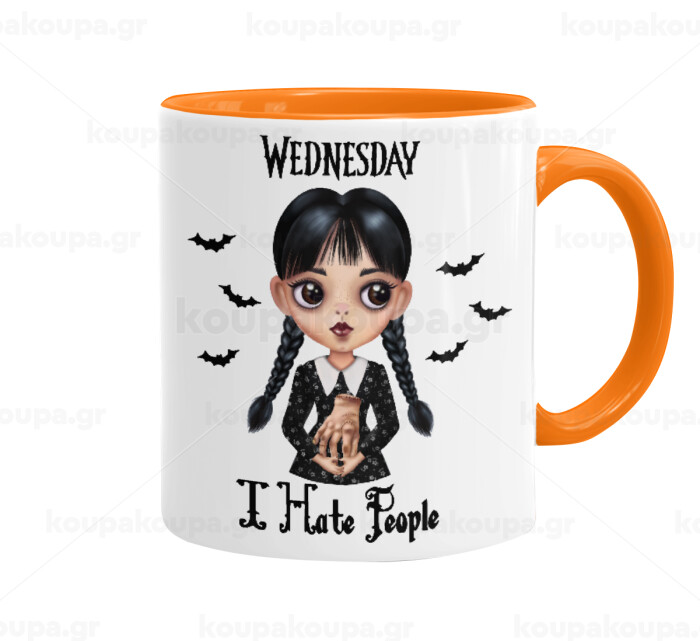 Wednesday Adams, i hate people, Κούπα χρωματιστή πορτοκαλί, κεραμική, 330ml